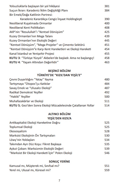 Bu sayede, çevre hareketi tarihi çalışmalarındaki –ki bunlar zaten oldukça azdır– direkt kendini “çevreci” olarak adlandıran kurumların, derneklerin vb. faaliyetleri ve üretim faaliyetlerinin insan-dışı, yaban doğa üzerindeki etkileriyle sınırlı yaklaşımdan farklı olarak, emek ve sosyalist hareketin tarihini de çevre tarihine dâhil etmeye çalıştım. Bu yaklaşım, “çevre sorunu”nun kökeni ve çözümünün araştırılması bakımından bize daha çok imkân tanımaktadır.